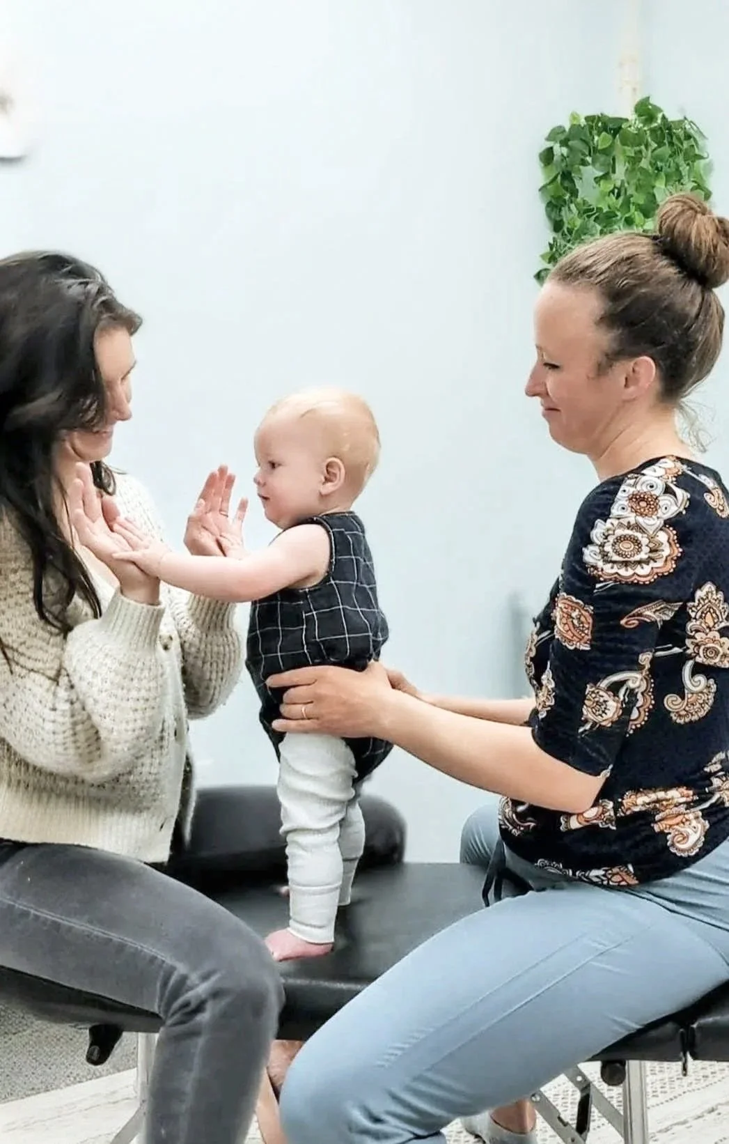 Your baby stays dressed and is usually on the table, in your arms, or feeding while we work. We move at baby’s pace, with lots of room for breaks, cuddles, and soothing.